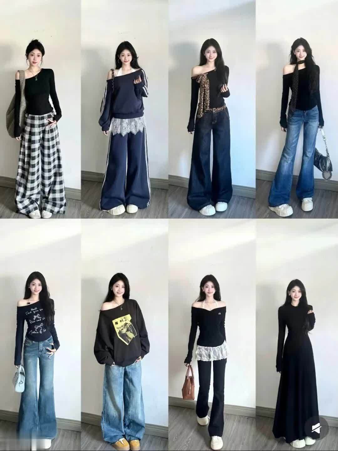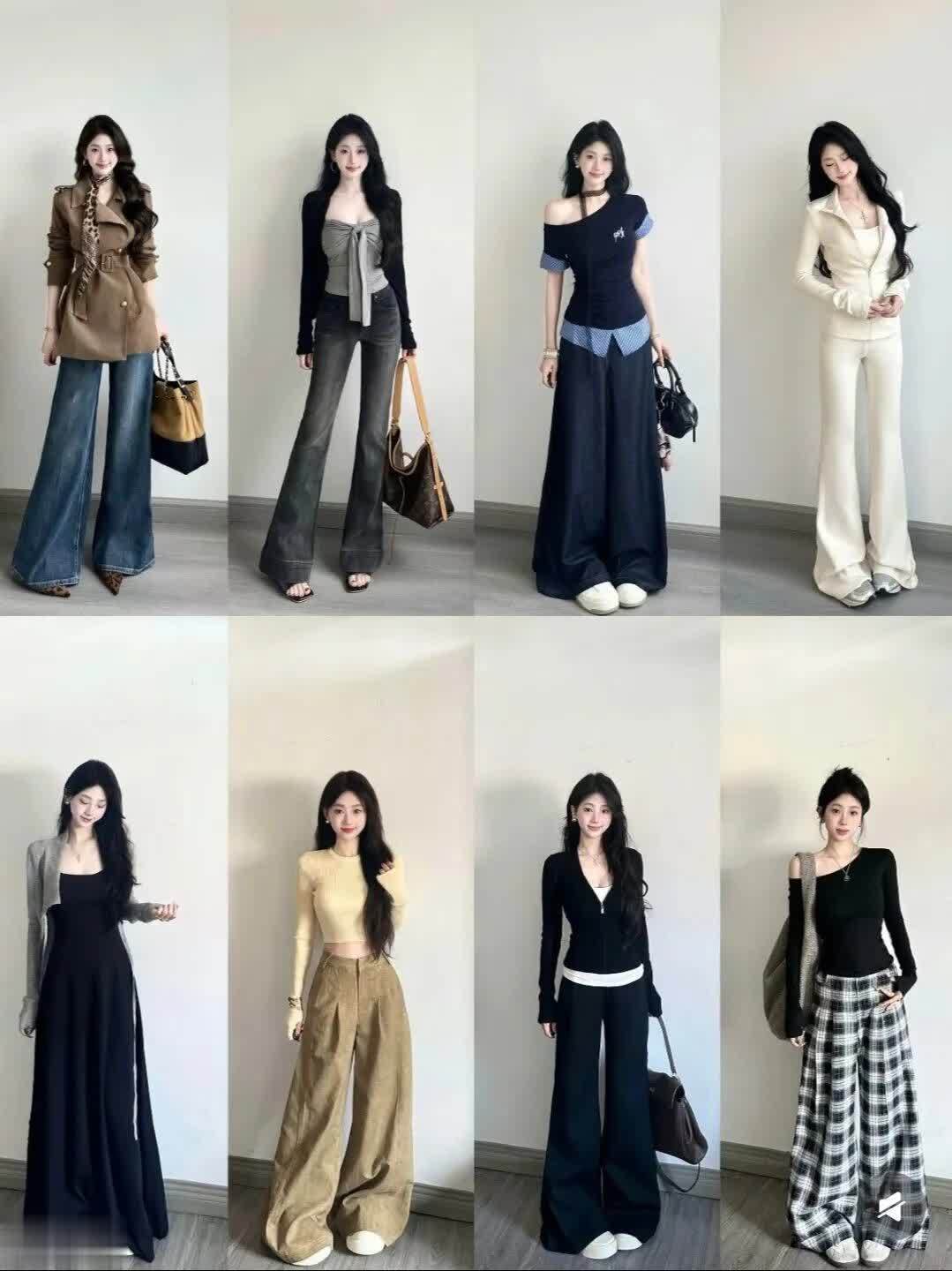 ✅ 核心公式:修身短上衣+垂感阔腿裤/长款半身裙