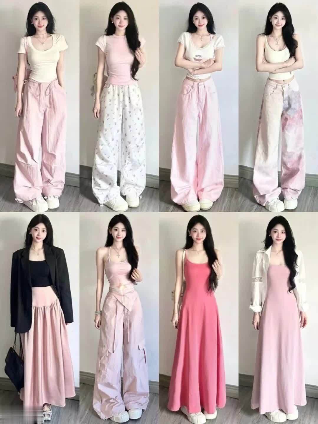 1. 粉+白:甜妹天花板!粉上衣+白裤子、粉吊带+白裙,温柔又减龄,学生党直接冲!
