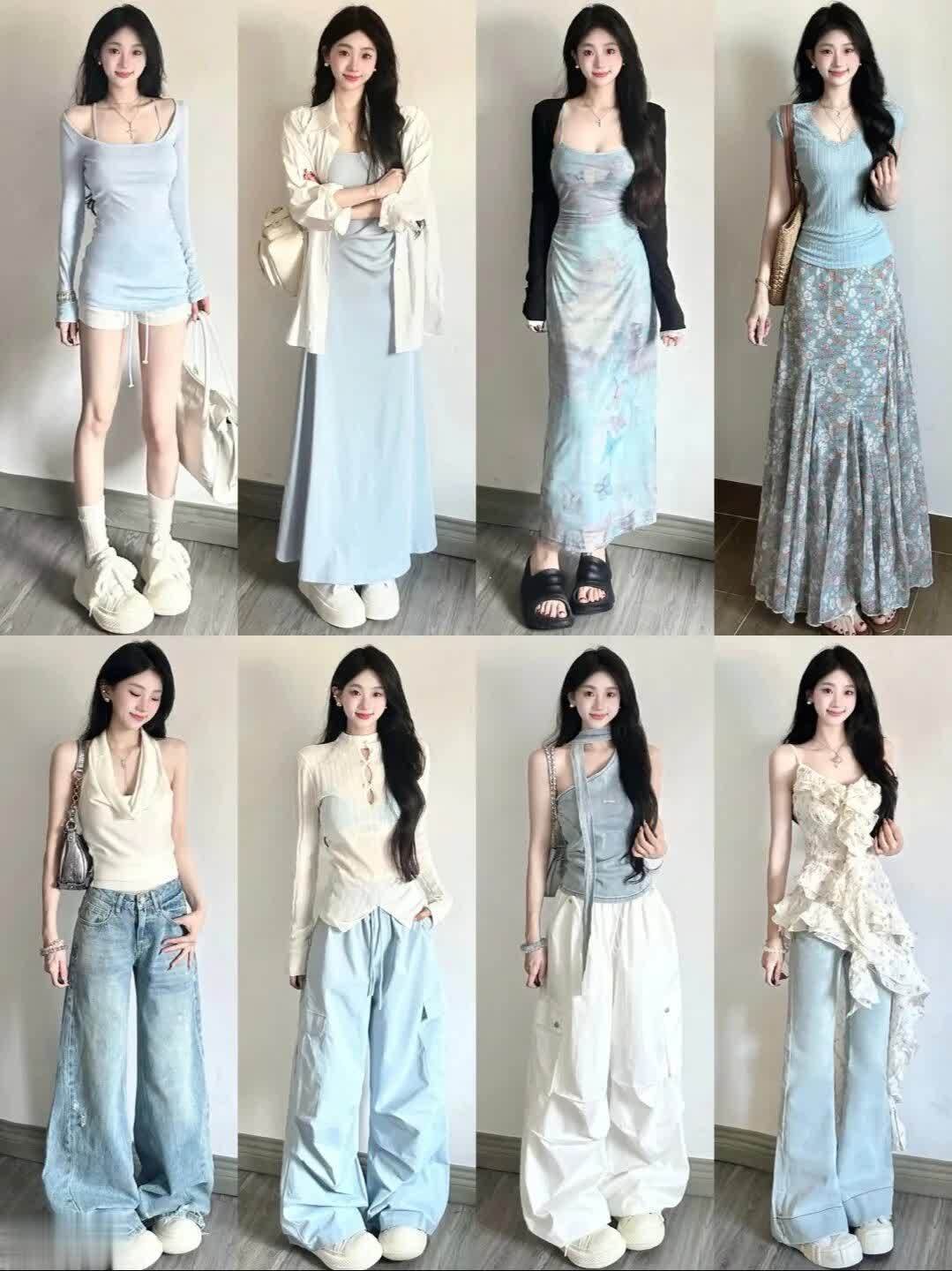 三、【清透蓝系穿搭】:降温感拉满!春夏穿清爽又温柔,显白又减龄